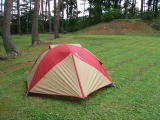 とにかく綺麗に管理されたこの芝地、敬意を表してやはり地面にテントを張らして頂く。