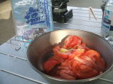 さて、温泉上がりサラリと気分良く、大好きなトマトに「白いダイヤ」を降りブラックニッカを遣り始める。
