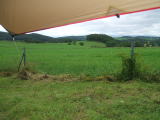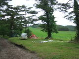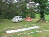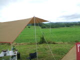 試しに中の細い車道に入ってゆくと、2組グループがキャンプ中であった・・・雨除けにブルーシート。
