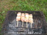 ランタンの灯のもとに、炭火で焼き物を楽しんで夜を過ごす。