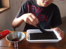 盛夏の暑いなか、店主のとがしさんは相変わらずがんばって日本海の天然塩を作っているようでした。