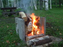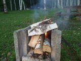 しばらくして、先の二人組みと一緒に焚き火を眺めて談話。
