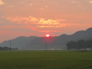 麓に下り街中に向かう車中からは、綺麗な夕日模様を眺めることができました・・・。
