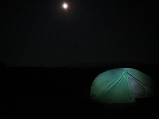 登山口駐車場に置いた車の脇、テントのなかで寝ていたわけだが、深夜にもかかわらず数台の車が入ってきていた。
