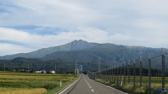 正面の向こう側に、鳥海山の山頂が望める・・・