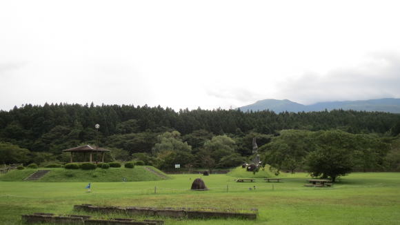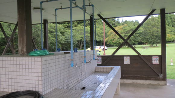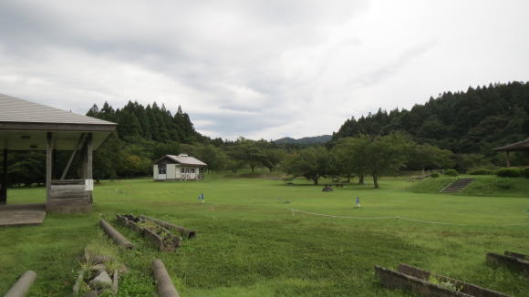 大きく快適な炊事棟と心地良い芝地、向こうには鳥海山の遠望・・・