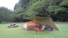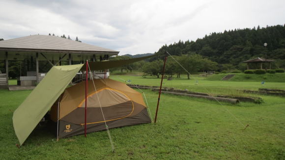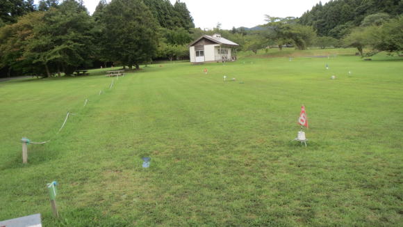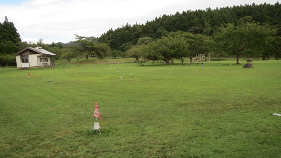 綺麗な芝生広場はグランドゴルフ場となっており、そのエリアに入らないように注意してテントを張る。