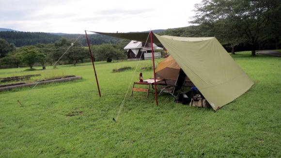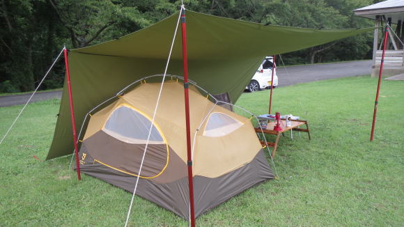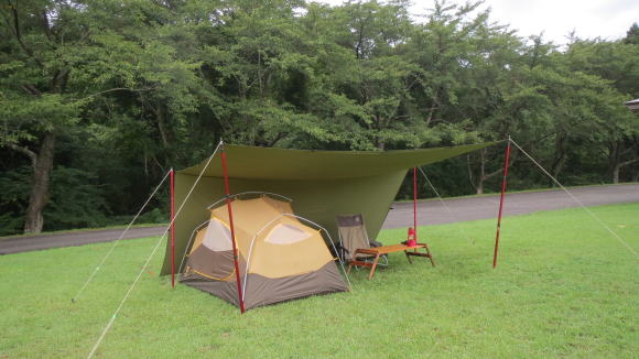 炊事棟の横の一等地エリアが空いていので、ここに決める。