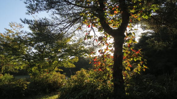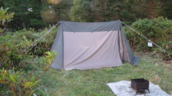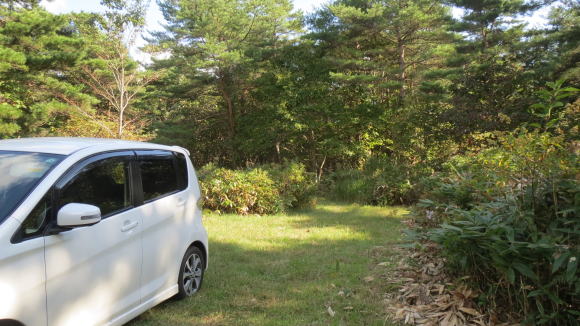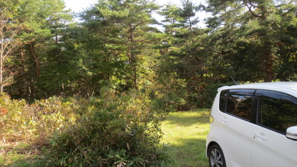 手前の広々した広場ではなく、いつものように最・最奥側の樹々の隙間に入り込み、そこの狭い一画に決める。