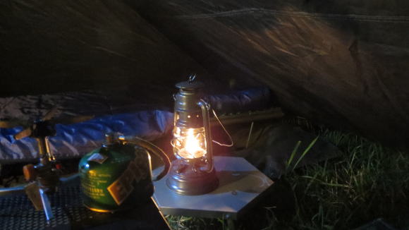 ランタンの熱でシェルタ内は暖かくて、非常に心地良く過ごしている。