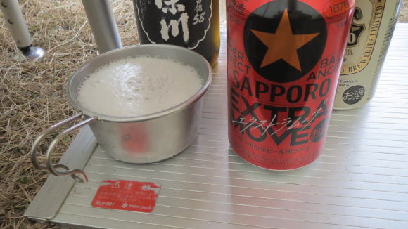 気分上々!野営酒、プシュっと頂きま〜す!!