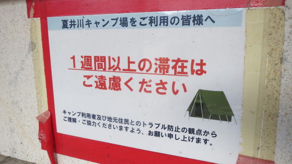 このキャンプ場では見かけないけれど、掲示の1週間滞在でも長すぎるよ・・・