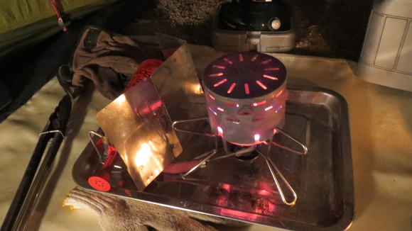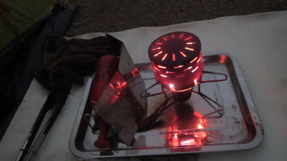 冷えてきてますので、暖房の液燃ストーブを灯油で稼働。