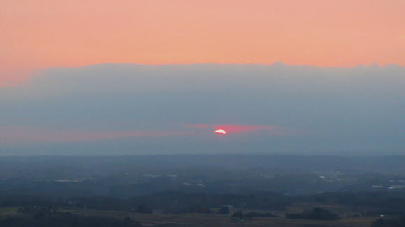 ぶ厚い雲の隙間に、かろうじて夕日が覗く。
