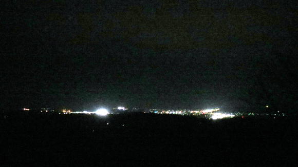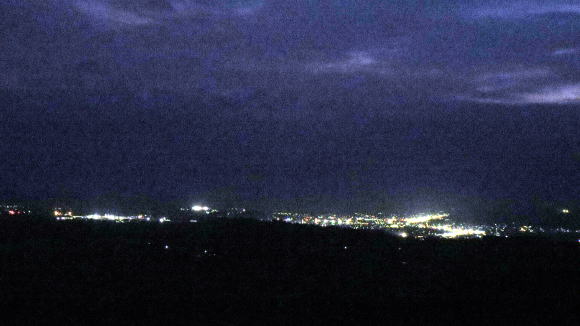 シェルタの前に立つと、眼下に小さな夜景が望める。