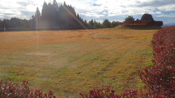 上段広場は枯れた茶色、草丈が無く動きやすい。