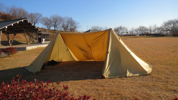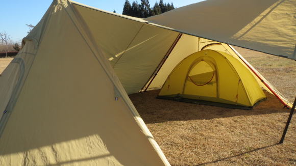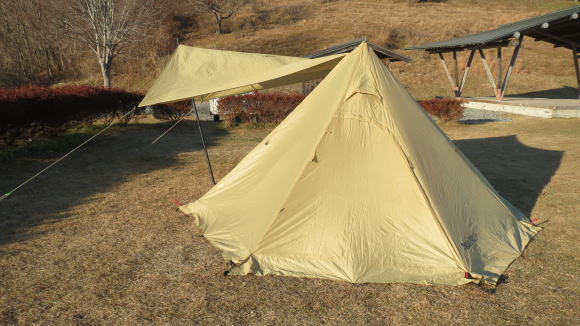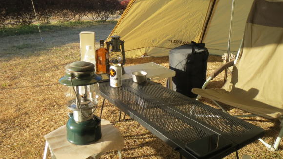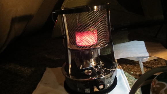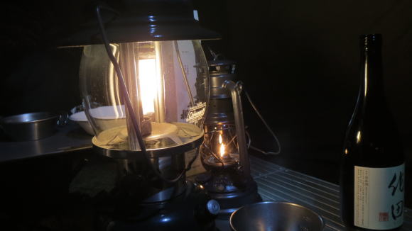 ランタンに石油ストーブでシェルタ内は極寒、快適です。