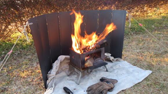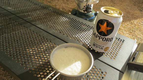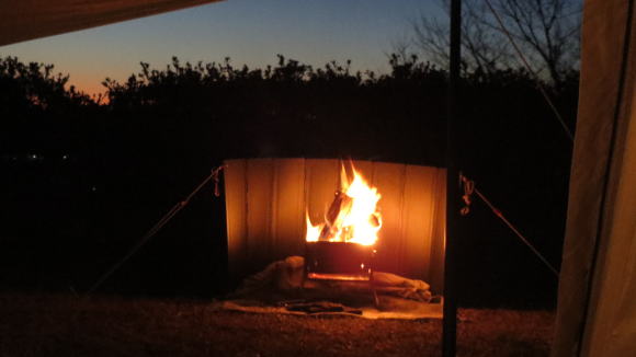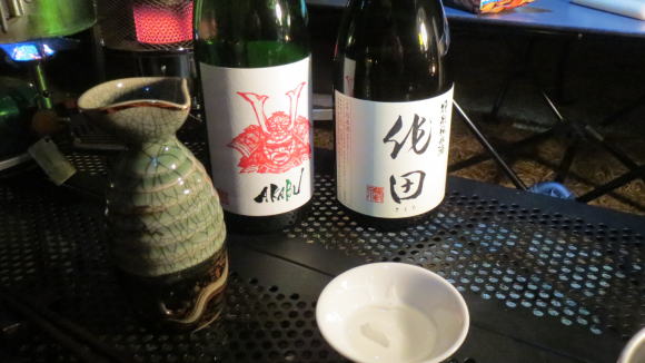 焚き火を眺めながら、偶然再会したキャンプ友のSさんと合流して酌み交わす。
