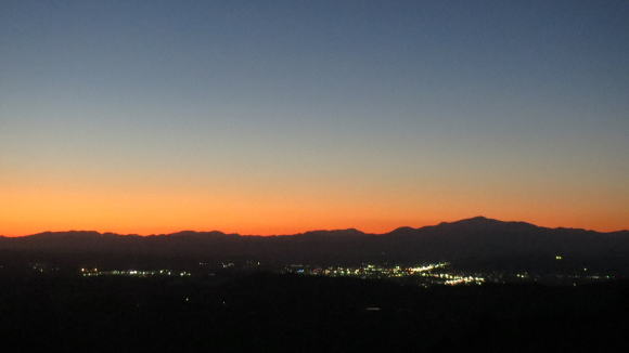 その後しばらくすると、山際の紅のグラデーションが広がり街には明かりが点き始めた。