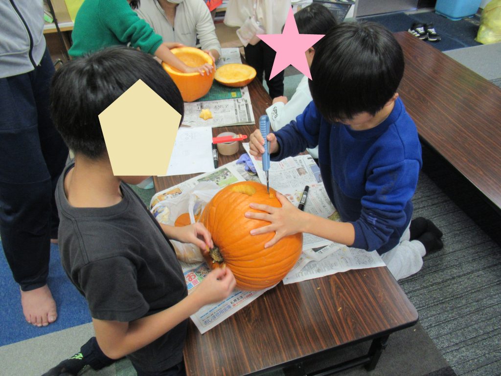大きなカボチャをくりぬくのは大変でしたが、みんなで協力して作った達成感がいっぱいの一日になりました💛