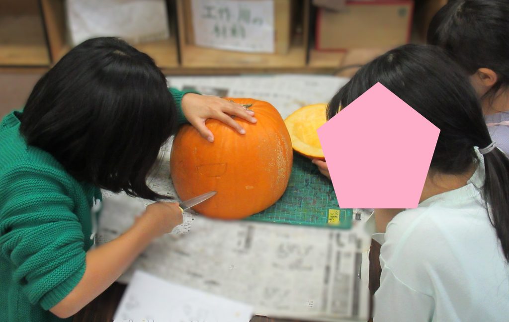 「ジャック・オー・ランタンを作ろう!」と支援員が声をかけると、