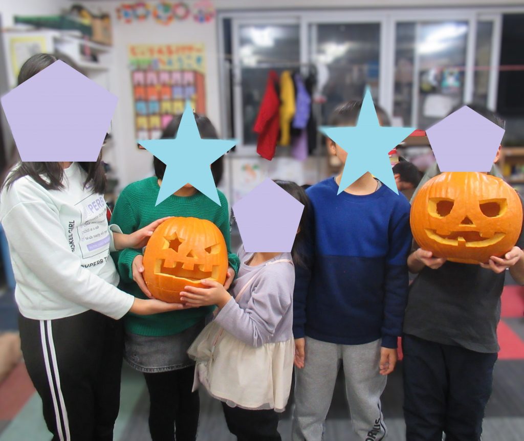 自分たちで作ったジャック・オー・ランタンは、なんだかかわいく見えますね💛
