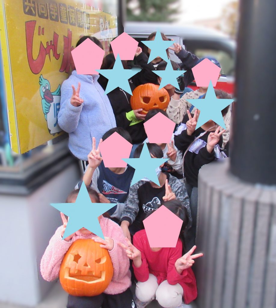 ↑みんなで記念撮影📸 頑張って作ったジャック・オー・ランタンと一緒にパシャリ!