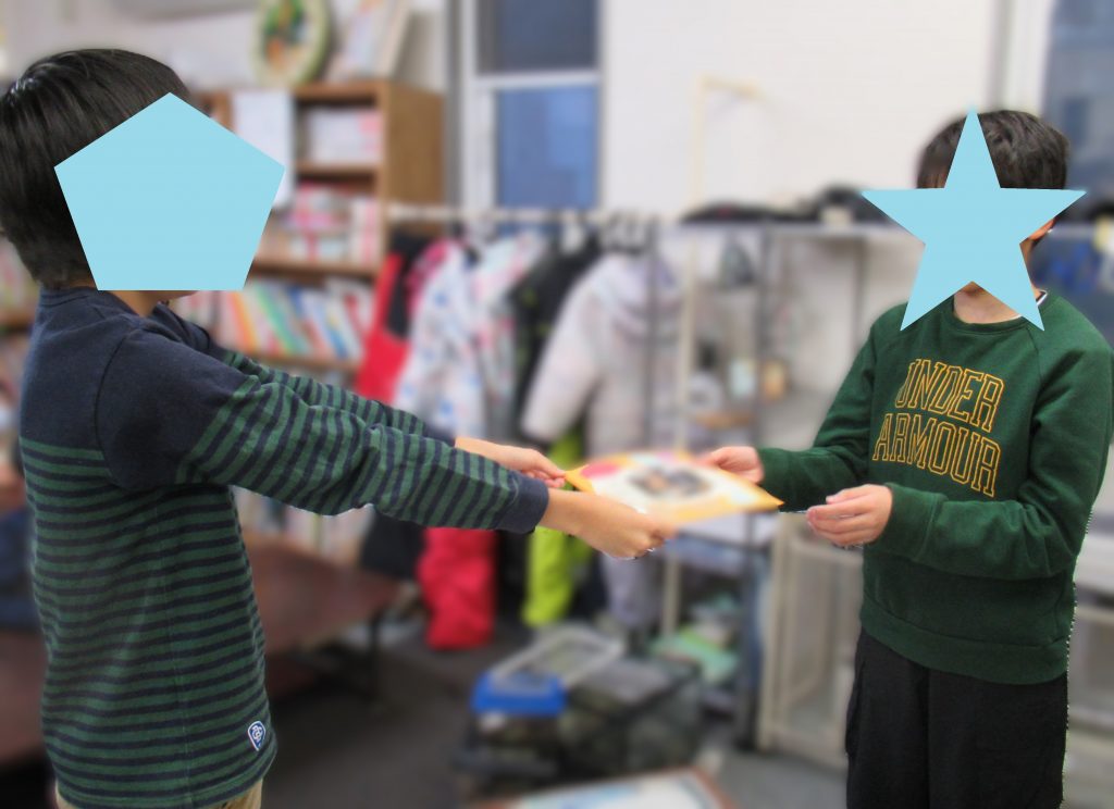 お誕生日カードは、同じく6年生のH君が、お誕生日のS君に手渡ししました🎁