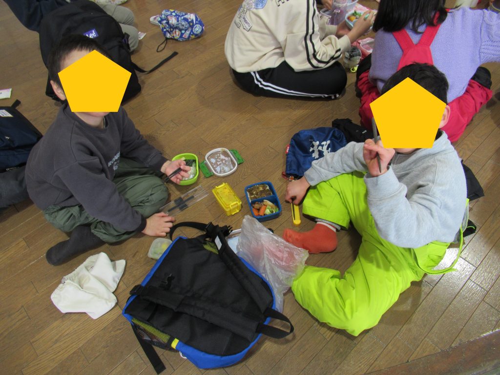 親御さんが用意してくれたお弁当と水筒をいただき、少しゆっくり休憩😊