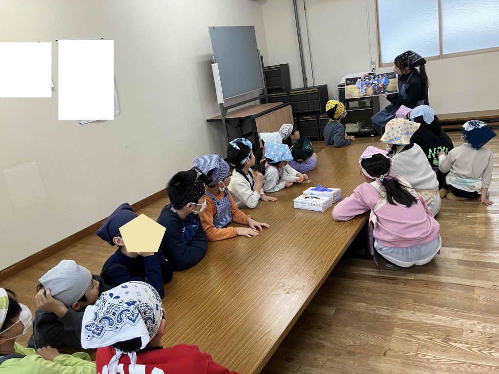 子どもたちは床に座り、静かに耳を傾けていました