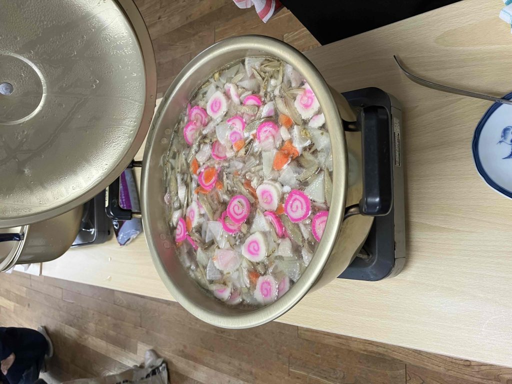 餅のトッピングの材料用意や雑煮の食材をカットしたり、