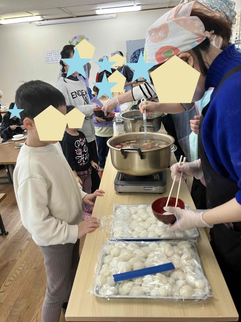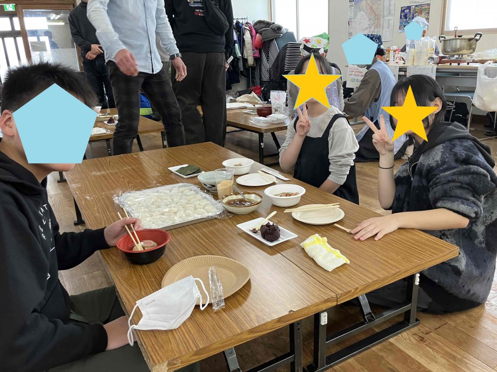 会館内には お餅のいい香り が広がり、テーブルを用意して、いよいよお食事タイム
