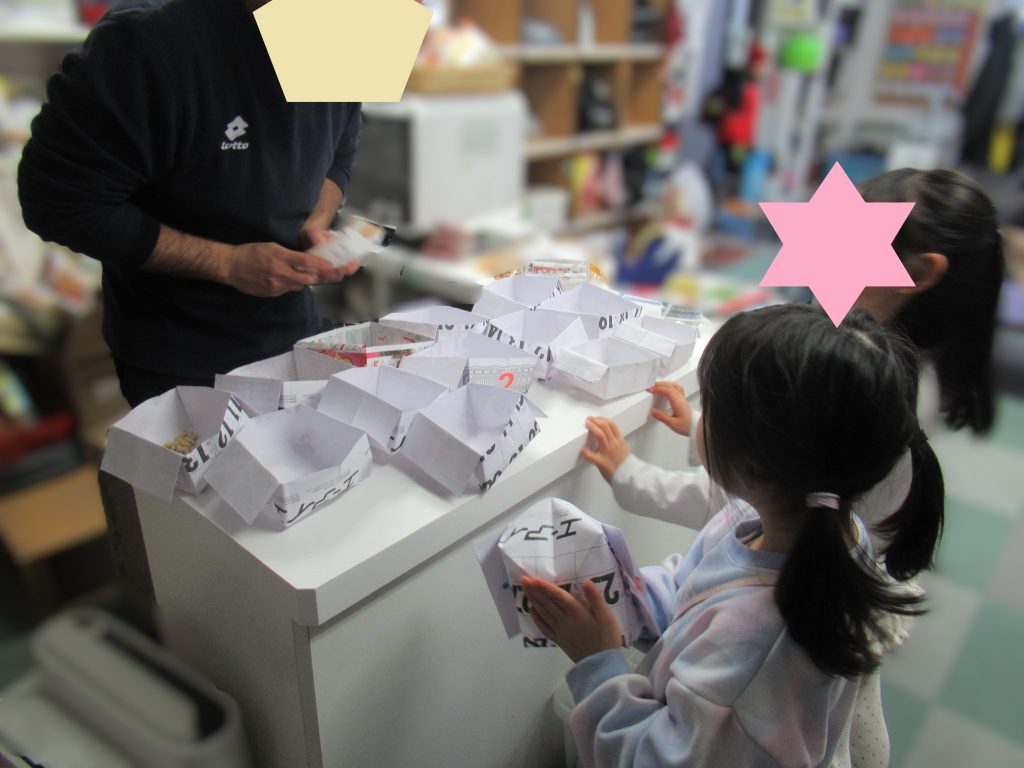 紙で作った“ます”に豆を入れてもらい、準備万端🥜✨