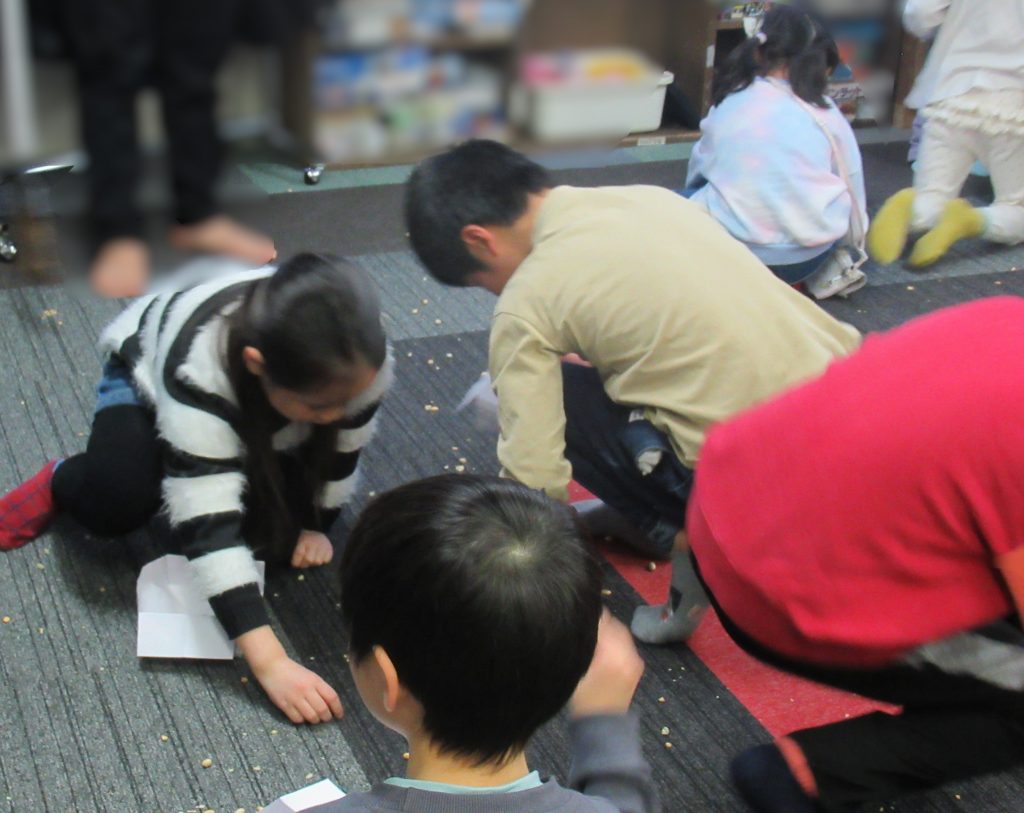 祭儀のあとは、床に落ちている豆をみんなで拾ってお片づけ🧹✨
