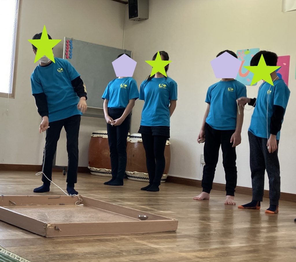 ↑「遊びの紹介」。たくさん練習したこまの技「どじょうすくい」、「紐かけ手乗せ、「空中手乗せ」、「たて技」、「指乗せ」、「紐乗せ」、「けんかごま」など、それぞれ得意な技を披露🎤✨👏