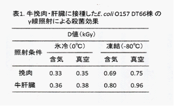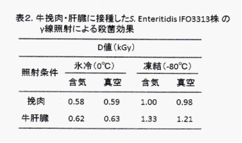 牛の肝臓とひき肉を使ってどのくらいの放射線を照射すれば菌が死ぬのかという実験がされています。